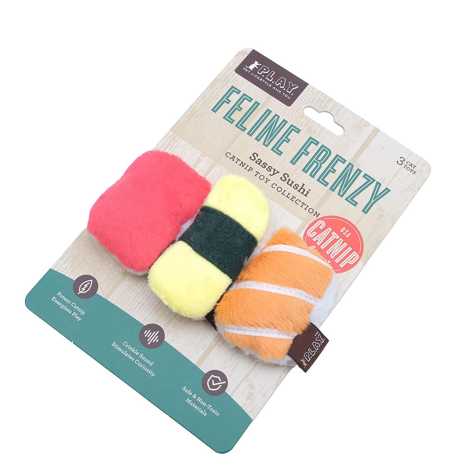 You’ll have to paw-don your kitty’s manners as she digs into these delicious USDA Organic Catnip-filled plush toys in the shapes of sushi!