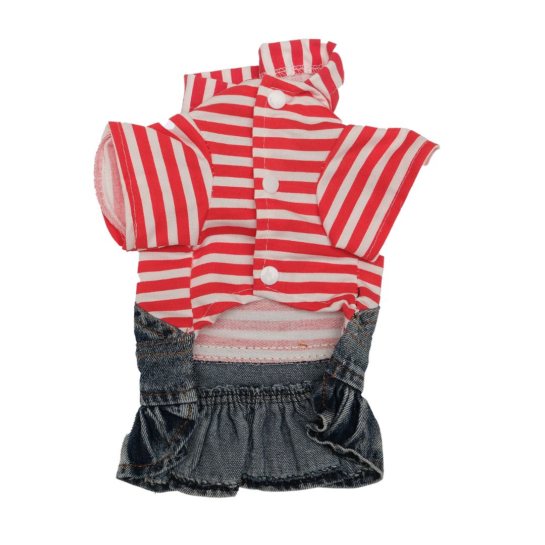 Red stripe denim dress